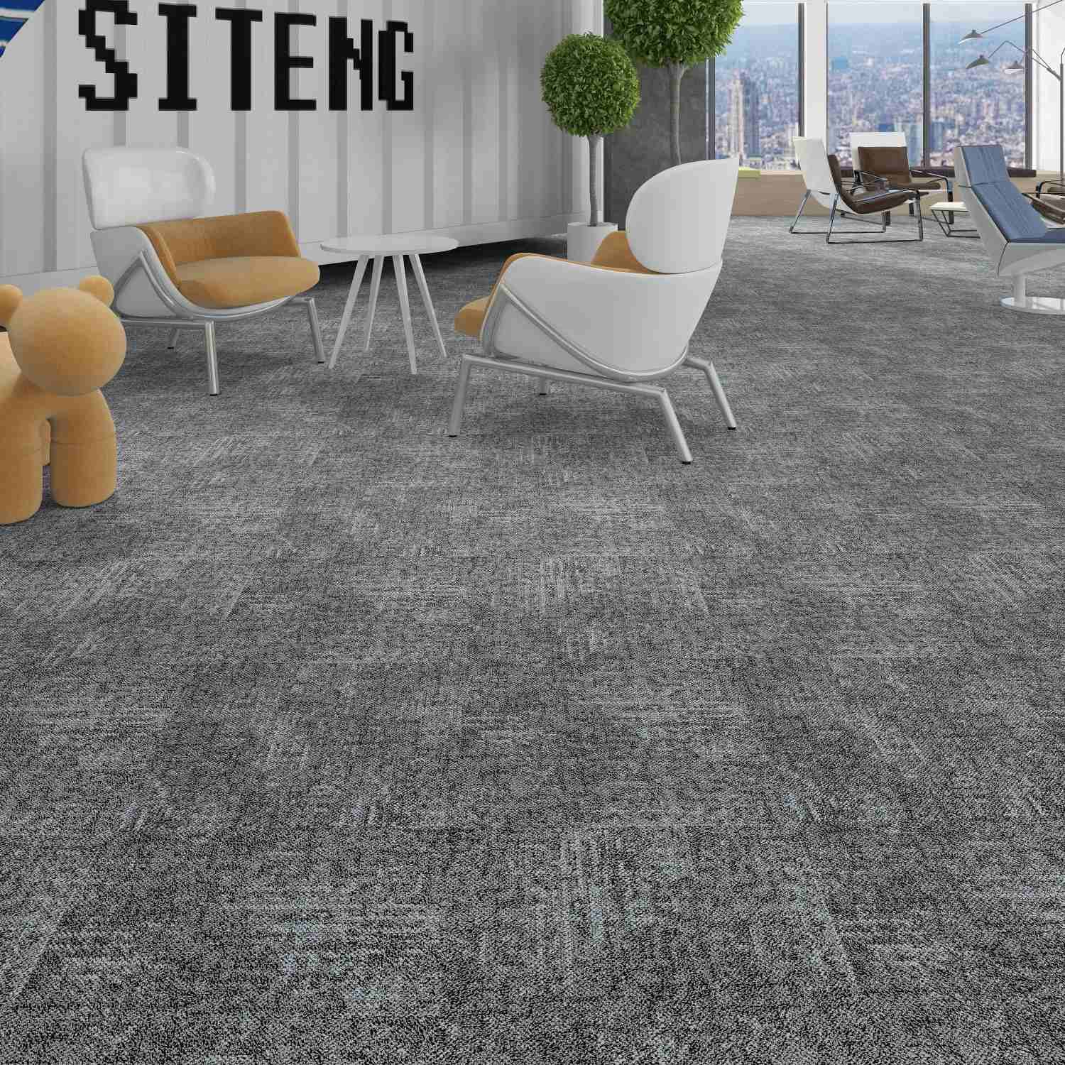 La mayoría de nuestras baldosas de moqueta comerciales cuentan con respaldo resistente a la humedad e impermeable, como PVC, betún, PE y PU, lo que las hace adecuadas para ambientes húmedos o climas cálidos.